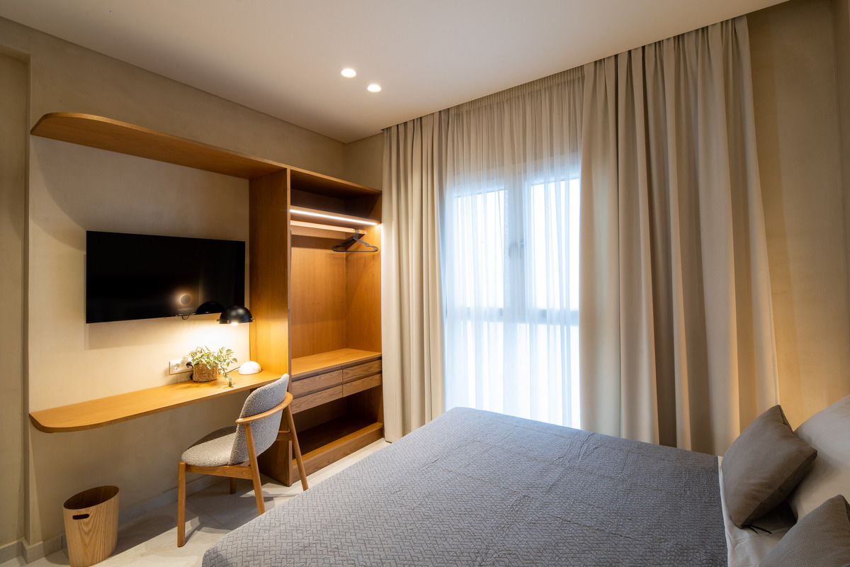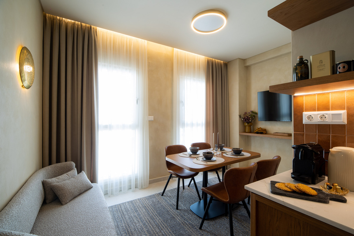 Family Stay is a spacious 54-square-meter apartment, ideal for 2 to 4 guests. It is located at Centauro Prime Residencies, in the heart of Volos, close to cafes, bars, supermarkets, and the city’s famous tsipouro taverns.