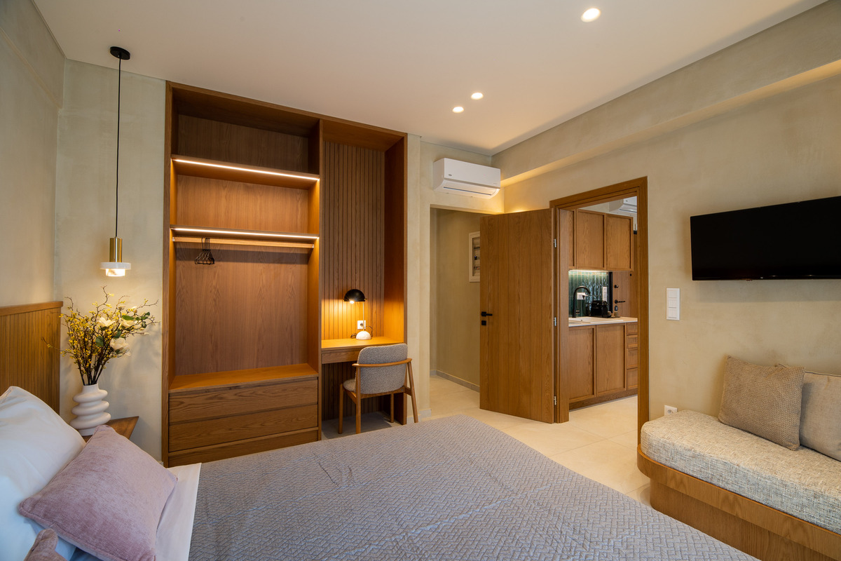 Με τις σύγχρονες ανέσεις και την άνετη διαρρύθμιση, η Family Suite είναι η ιδανική επιλογή για οικογένειες ή ομάδες φίλων που αναζητούν άνεση, ιδιωτικότητα και χαλάρωση κατά τη διάρκεια της διαμονής τους στον Βόλο.